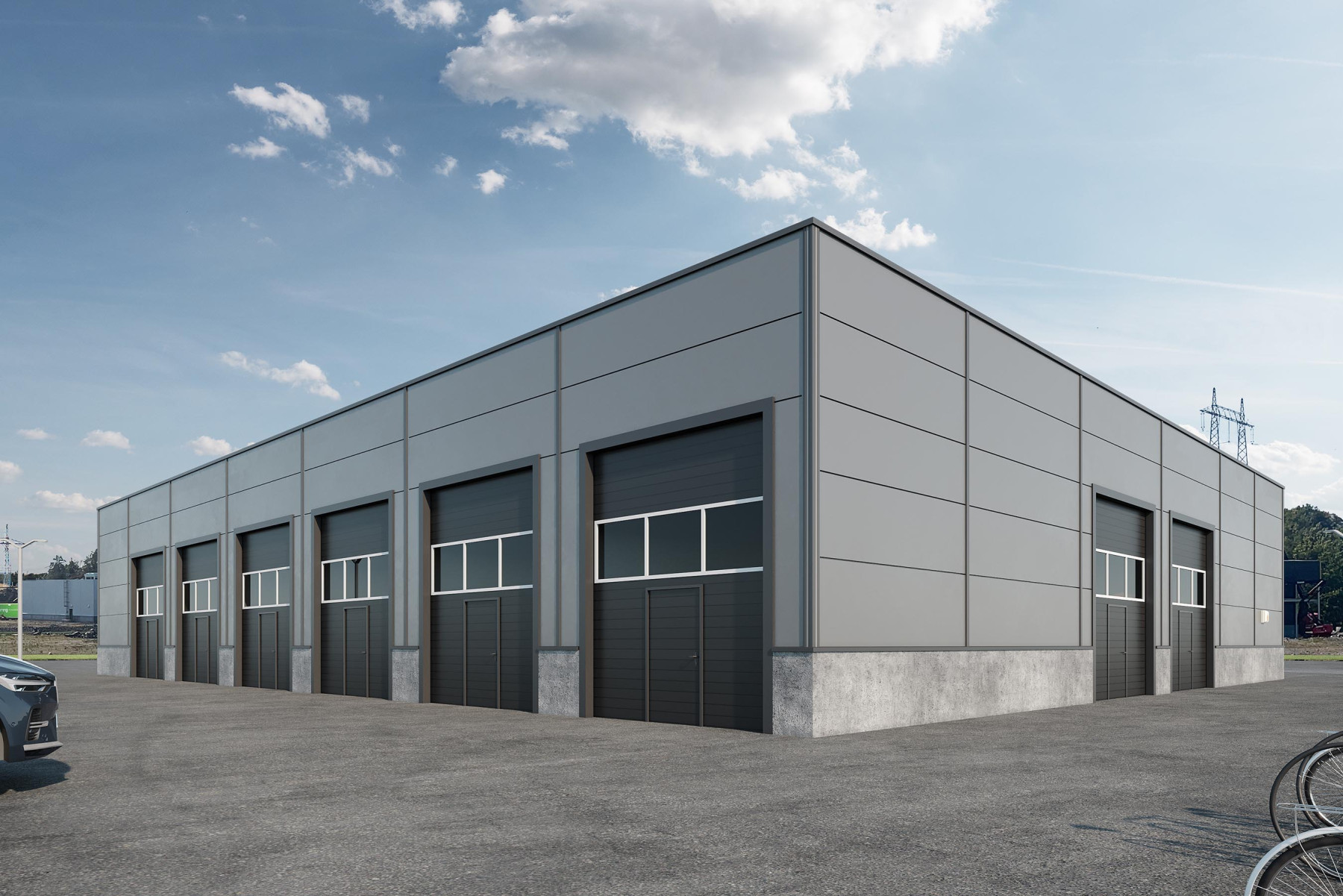 Hver seksjon leveres med isolert port med vindusrekke og dør i port